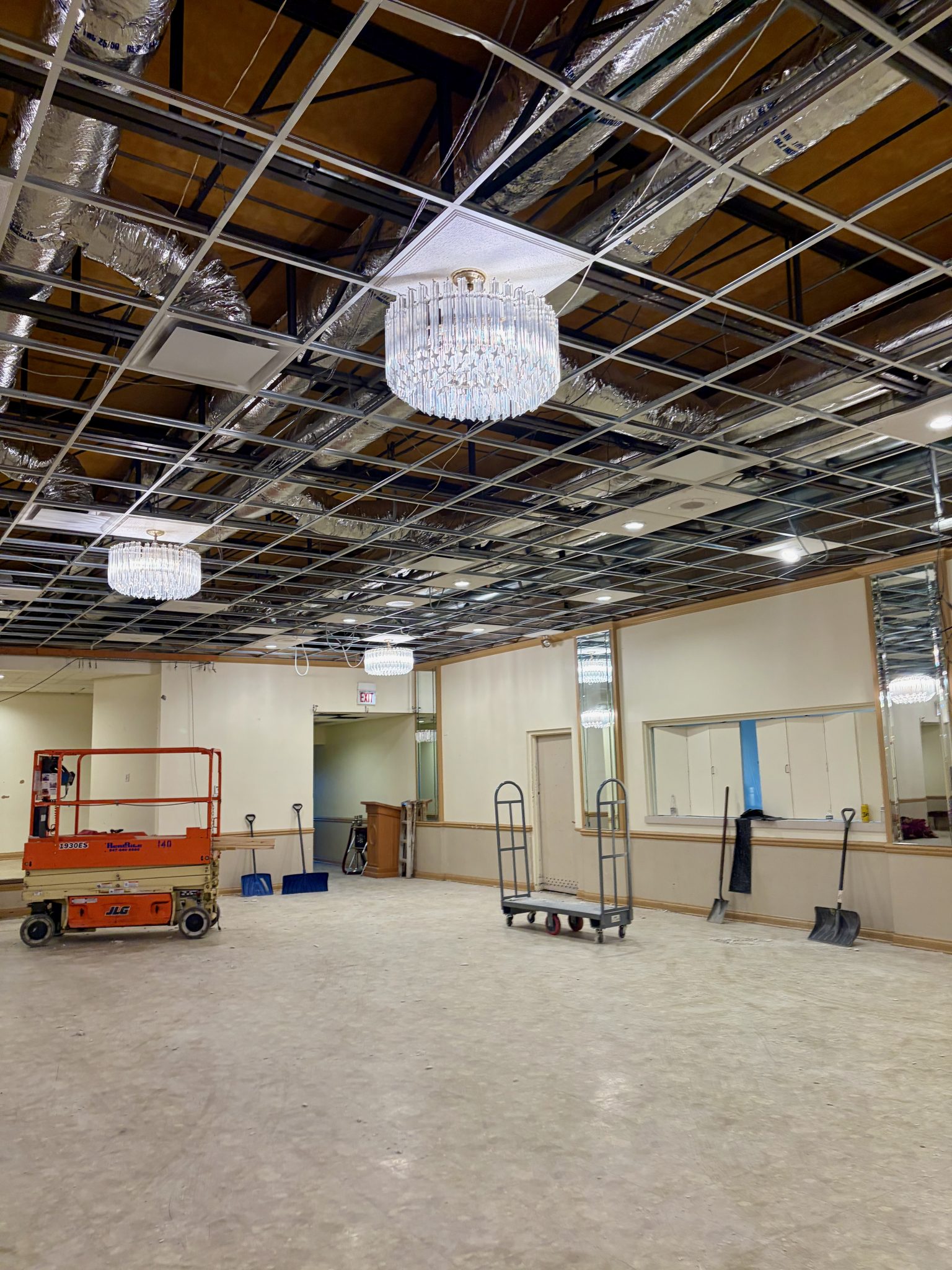 We’re happy to share some great progress in our Big Hall renovation! • Rough electrical and HVAC work is complete• Soffit and drywall are finished•